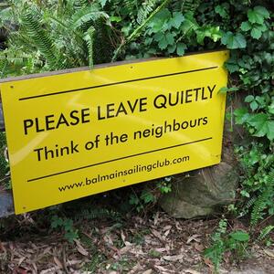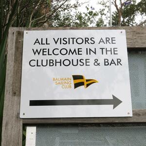 We may use composite panels for our vinyl signs. That's what the Balmain Sailing Club sign displayed here is made with. It's a durable and standard product widely used in the sign-making community.