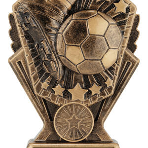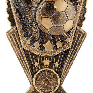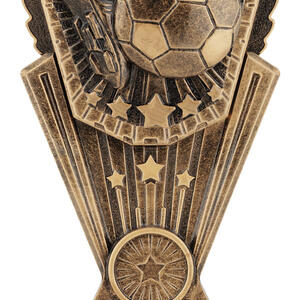A celebration of achievement in football, this trophy presents a dynamic football and boot design highlighted by star motifs. Finished in a rich gold tone, its metallic construction ensures a professional and lasting presence. Ideal for recognising skill and dedication, this piece stands out among football trophies for its elegant detail and enduring quality.
