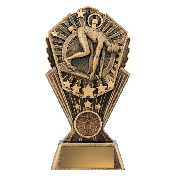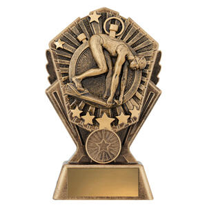 The Cosmos Female Swimmer Trophy features a dynamic 3D design celebrating movement and grace. With metallic detailing and quality weight, its a prestigious award for recognising outstanding female swimming achievements.