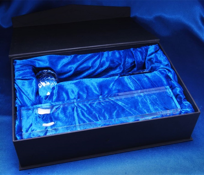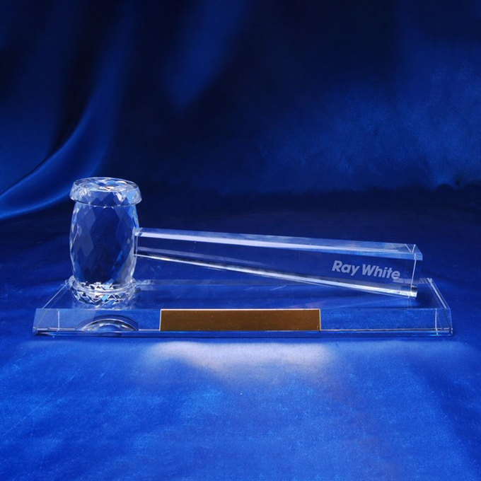 This premium Crystal Gavel is elegantly presented in a blue velvet-lined presentation case, making it an ideal prestigious award for distinguished Auctioneers and Chairpersons.
