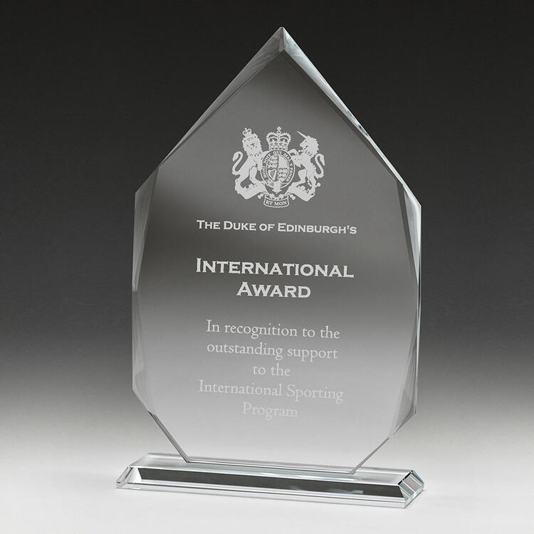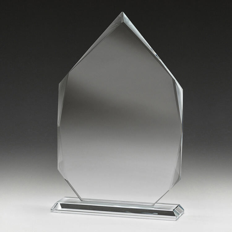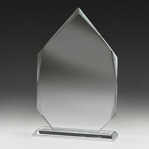 Glass trophies typically have a very slight green tinge, which can subtly affect the appearance of colour printing. In contrast, crystal trophies are completely clear.