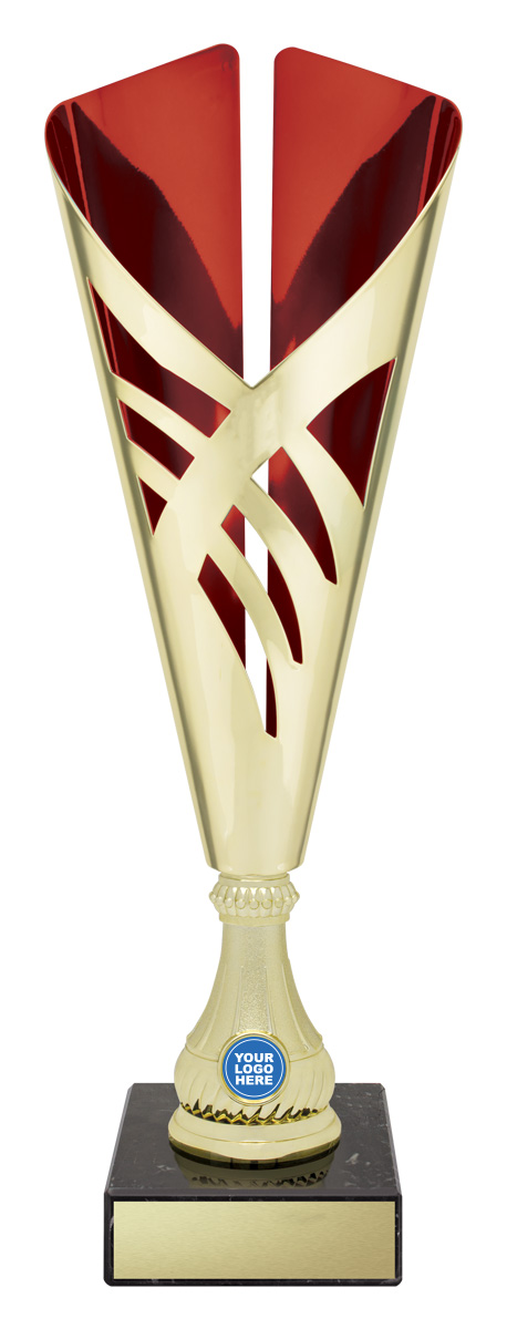 This metal trophy cup presents a contemporary interpretation of classic achievement awards with its conical silhouette and flared top. Available in gold, blue, red, and black, it features a refined blend of metal, plastic, and marble for lasting impression and durability. The customisable logo area and rectangular base provide a professional finish, making it a trusted choice for meaningful recognition across all events.