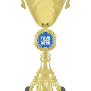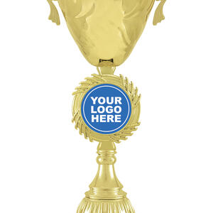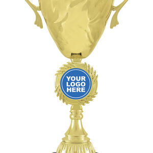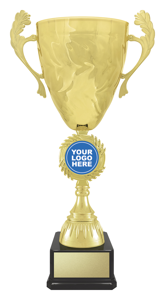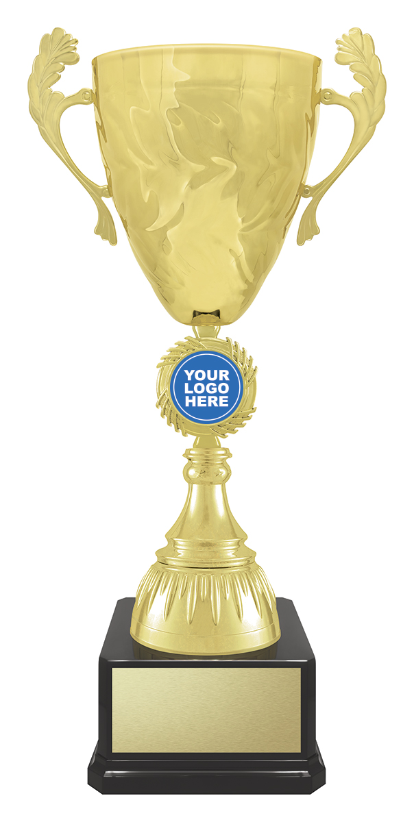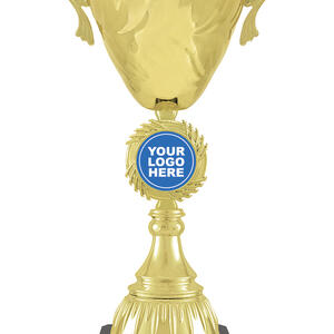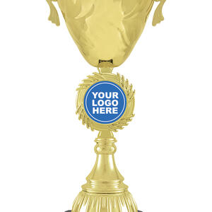 This gold metal trophy cup combines timeless elegance with enduring quality, making it an ideal choice for recognising achievement across any sporting event. The polished gold and black finish, classic handles, and sturdy metal and plastic construction offer a celebratory touch. With a customisable centre for your logo and a dedicated base for engraving, this trophy delivers a tailored and professional presentation.