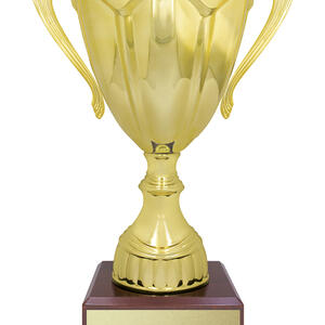 This gold metal trophy cup is crafted with an elegant gold finish and distinctive handles, set atop a polished timber base for a refined and memorable presentation. Its combination of premium metal, plastic and warm wood creates a sophisticated contrast, making it a trusted choice for recognising achievement in any sporting context. Designed for lasting significance, this award celebrates both accomplishment and quality.
