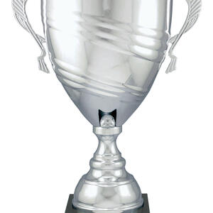The silver trophy cup is crafted with a polished metal bowl and graceful handles, creating an elegant silhouette atop a sturdy black base. Its reflective surface and refined silver finish make it a standout choice for general sports recognition. The base allows for meaningful personalisation to honour outstanding achievement.