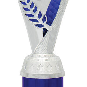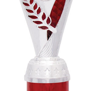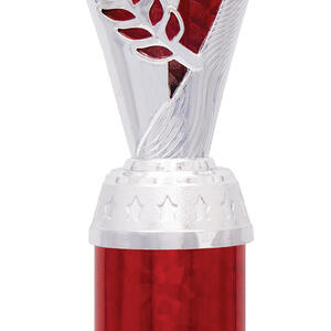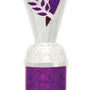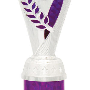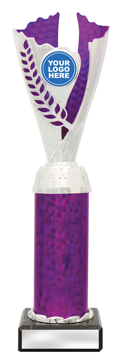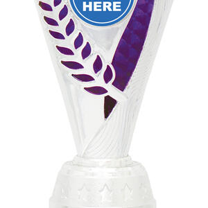 This plastic trophy cup presents a modern silhouette with its flared top and cylindrical base, combining silver tones with vibrant purple, blue, or red highlights. Crafted from durable plastic and marble, it features an elegant laurel design that symbolises achievement. The 25mm customisable logo area makes it a versatile choice for recognising excellence across a range of sporting events.