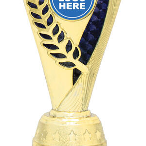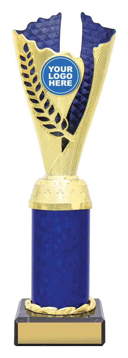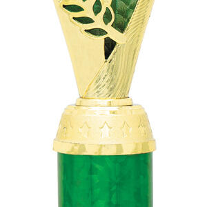 This plastic trophy cup blends a gold finish with vibrant green, red, or blue accents, offering a versatile choice for a wide variety of achievements. Its flared top and cylindrical base create a distinctive silhouette, enhanced by an elegant laurel motif. Featuring a 25mm centre for a custom logo, this award is designed for memorable and professional recognition.