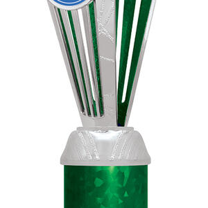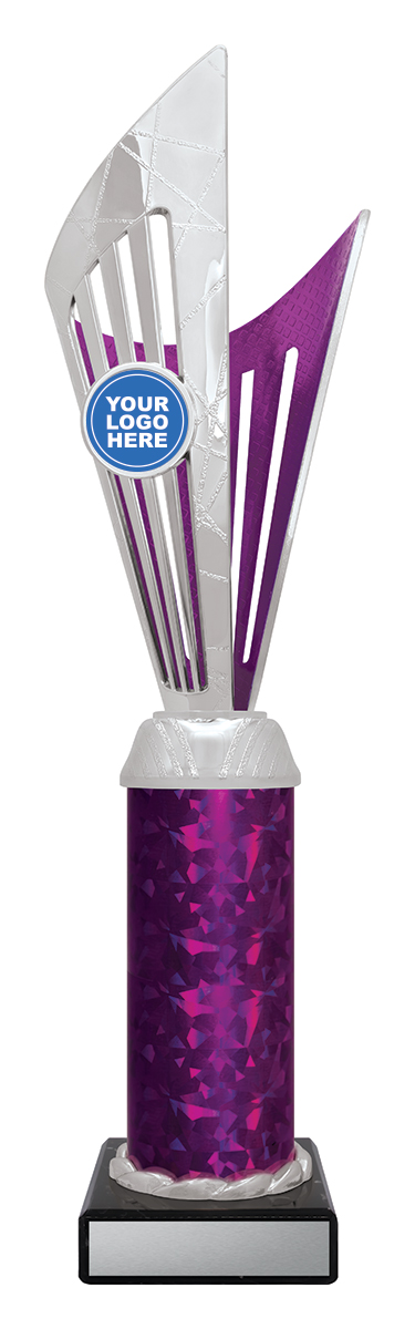 Celebrate achievement with this distinctive plastic trophy cup, crafted to combine durability and style. Its vibrant cylindrical base supports an abstract metallic top, available in blue, pink, purple, or green for a striking visual accent. The reflective base complements the contemporary design, while a customisable logo area offers an exclusive touch for personalised recognition.