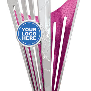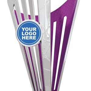 This striking plastic trophy cup combines sleek silver tones with bold highlights in blue, red, purple, green, or pink. Its abstract, contemporary shape is crafted from durable plastic, offering a modern touch for a range of general sports awards. Featuring a customisable logo area and a black base, this trophy is designed for memorable, professional recognition.
