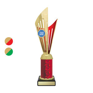 This affordale trophy features a tall, abstract silhouette in gold with rich green or red highlights, designed to celebrate achievement across any sport. Durable plastic and marble construction offers a reliable feel, while a striking mix of colours creates lasting visual impact. A customisable logo area and personalisation ready base make this award both memorable and exclusive.