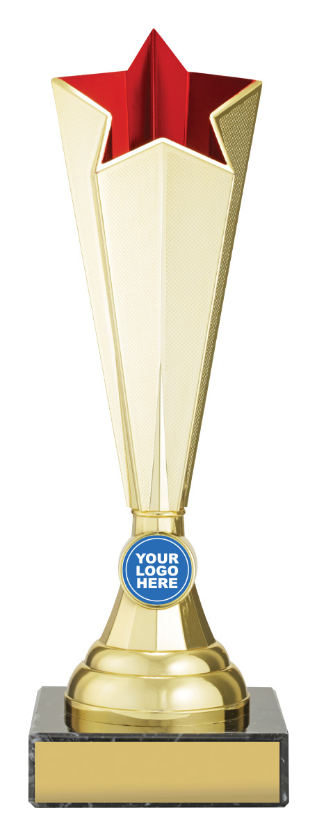 This star trophy features a striking gold, red, and black design with a prominent star shaped top, crafted from plastic, and marble for a balance of durability and style. The customisable logo area allows for tailored recognition, while the solid base provides space for further personalisation. A versatile choice for celebrating achievement across any occasion.