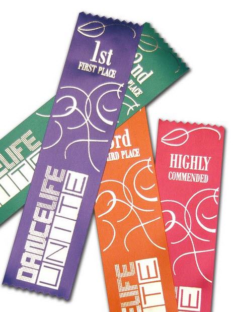 Custom printed award ribbons are a vibrant and affordable way to recognise achievement at events, competitions, and ceremonies. Available in a variety of colours and finishes, these high-quality satin ribbons can be printed with your own logo, wording, and award levels such as 1st, 2nd, 3rd, or Highly Commended. Each ribbon is made to order with crisp text and clear graphics, ideal for dance, school, and sporting events.