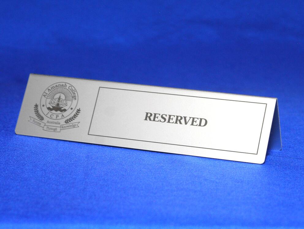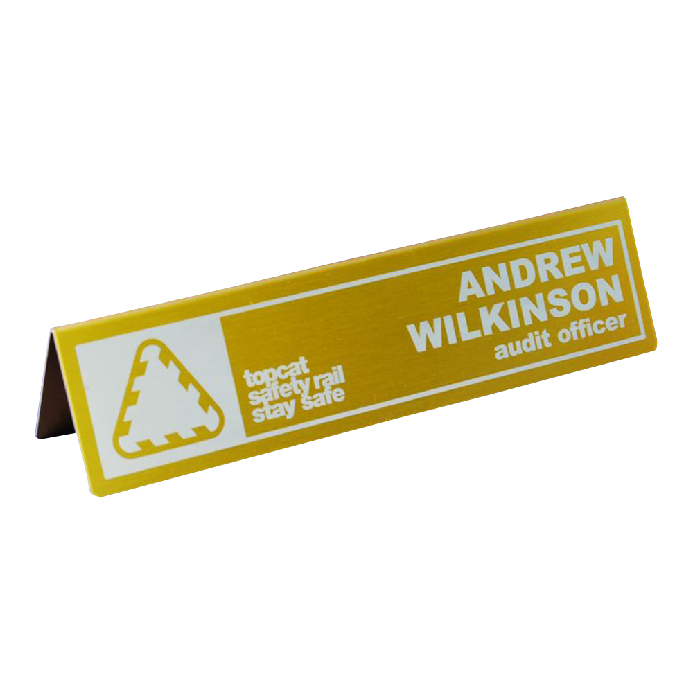These lightweight alloy "A" frame desk name plates are an economical and professional solution for office signage. Crafted from durable all-metal alloy, they are available in a range of colours to match your corporate style. Each plate can be laser-engraved with text, logos, or graphics, or printed in sharp full colour for maximum impact.