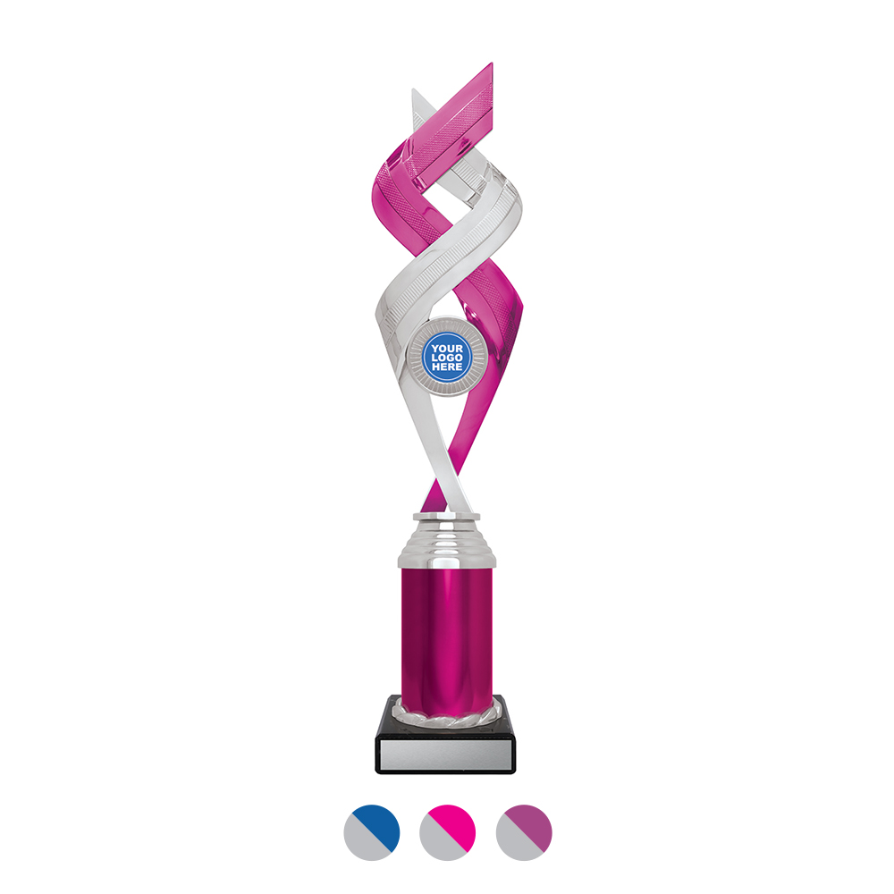 Crafted for contemporary recognition, this Jetstream Series dance trophy features a striking twisted spiral silhouette in silver and purple with a sleek circular base. The 25mm centre provides customisation, making it an exceptional choice for those seeking elegant dance trophies that celebrate achievement with distinction.