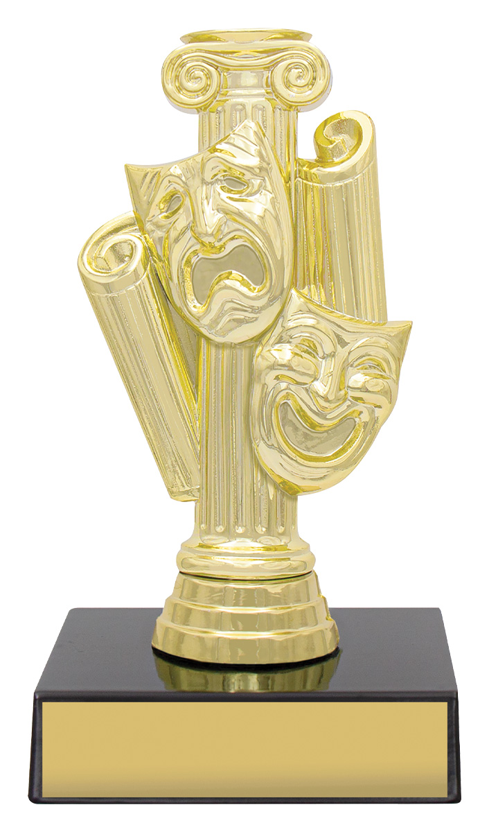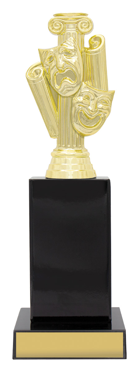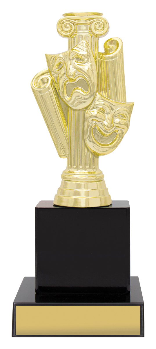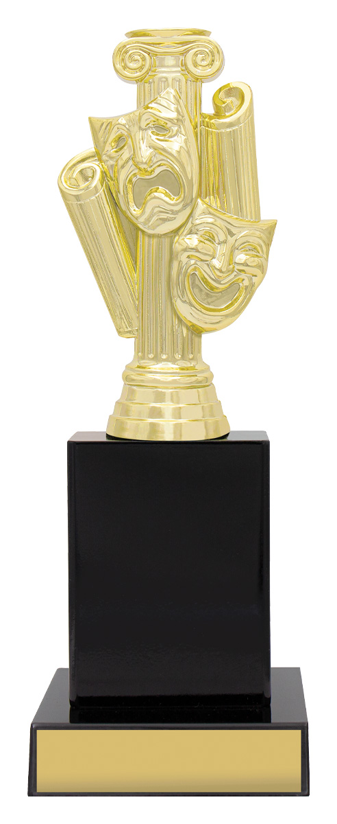 Celebrate exceptional performances with this elegant theatre award. Featuring a gloss black timber column with a detailed comedy and tragedy masks, this trophy captures the spirit of dramatic achievement. Making it an ideal choice for recognising theatre excellence.