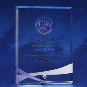 Glass trophies typically have a very slight green tinge, which can subtly affect the appearance of colour printing. In contrast, crystal trophies are completely clear.