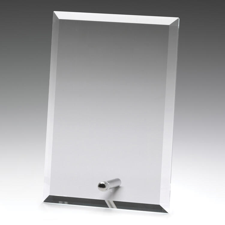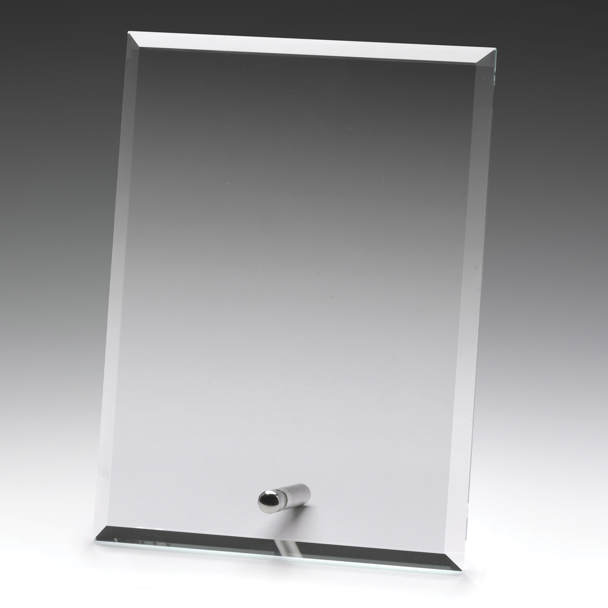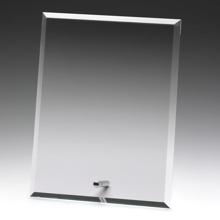 This glass plaque offers a refined way to recognise achievement, with a thick, clear glass panel mounted on a sleek silver metal stand. Its rectangular form and contemporary materials create an elegant display piece for awards or milestones. Available in three sizes, it delivers a memorable and professional solution for celebratory occasions.