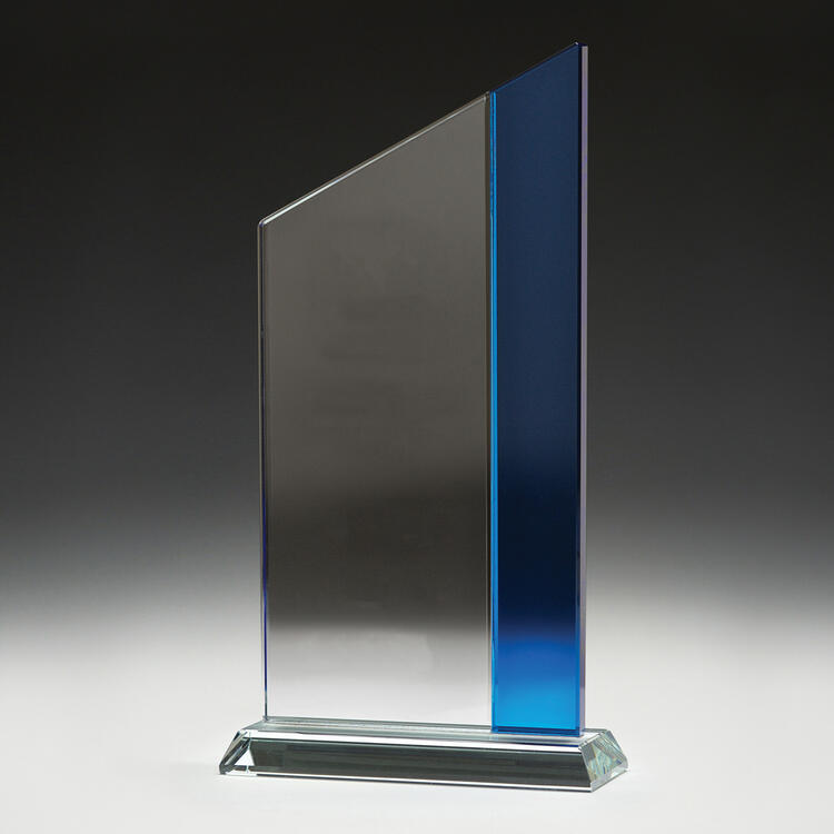 Glass trophies typically have a very slight green tinge, which can subtly affect the appearance of colour printing. In contrast, crystal trophies are completely clear.