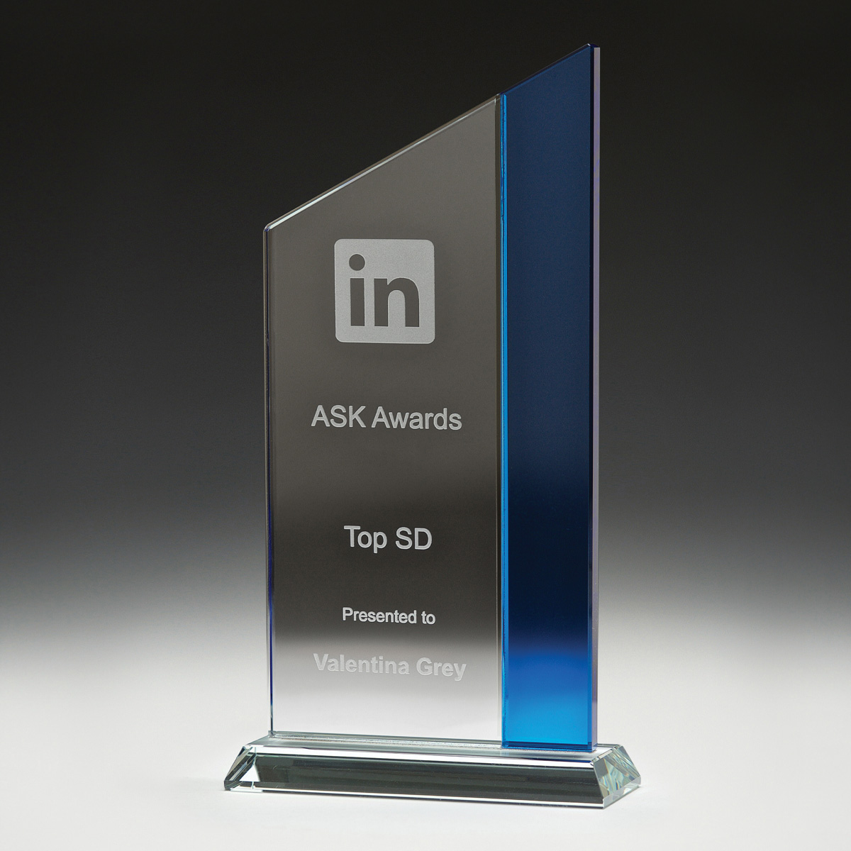 We use Superior Sandblast engraving or high-resolution full-colour printing to achieve striking results on our glass awards and trophies.