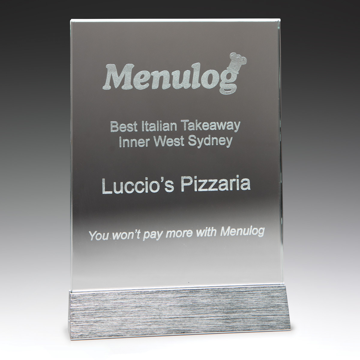 Glass trophies typically have a very slight green tinge, which can subtly affect the appearance of colour printing. In contrast, crystal trophies are completely clear.