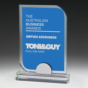 Glass trophies typically have a very slight green tinge, which can subtly affect the appearance of colour printing. In contrast, crystal trophies are completely clear.