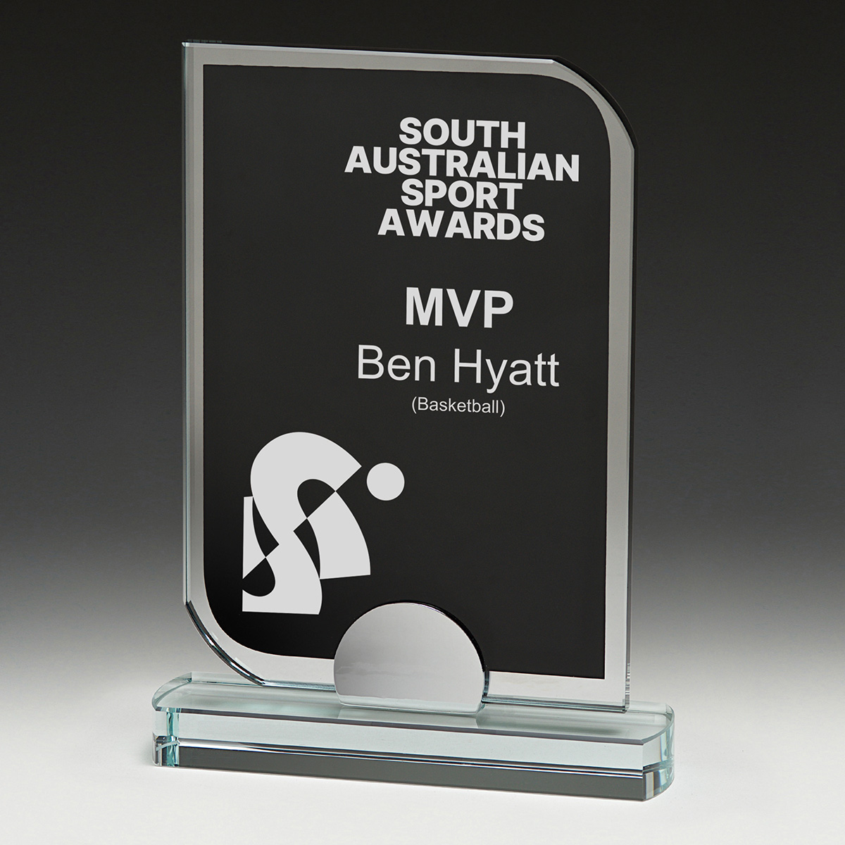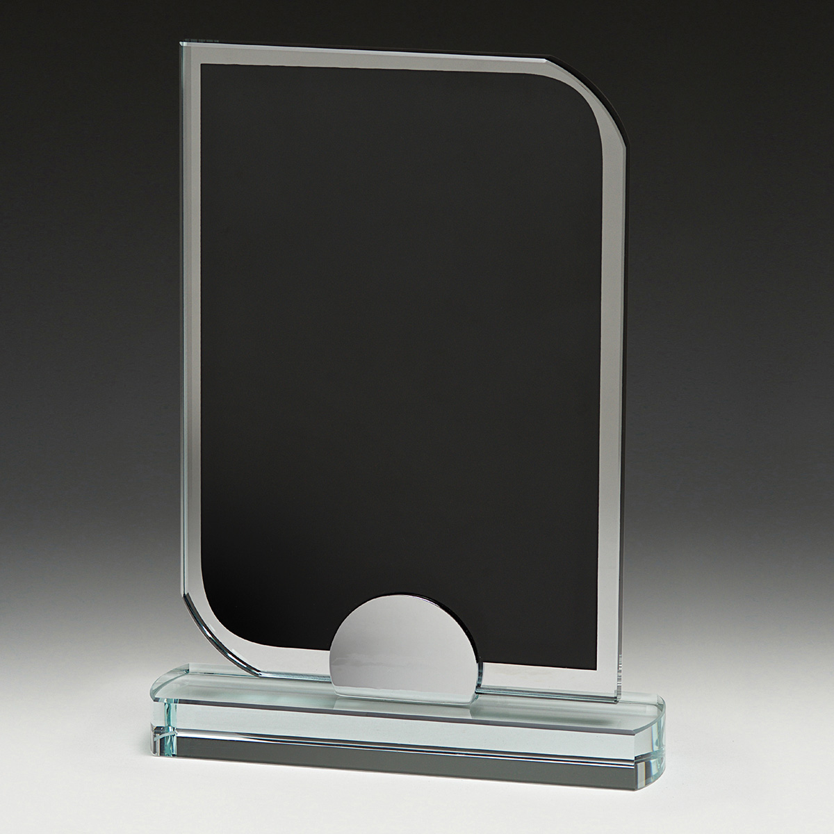 Glass trophies typically have a very slight green tinge, which can subtly affect the appearance of colour printing. In contrast, crystal trophies are completely clear.