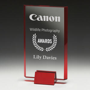Glass trophies typically have a very slight green tinge, which can subtly affect the appearance of colour printing. In contrast, crystal trophies are completely clear.