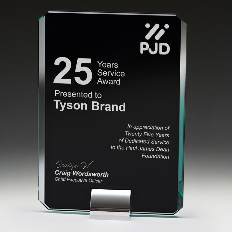 We use Superior Sandblast engraving or high-resolution full-colour printing to achieve striking results on our glass awards and trophies.