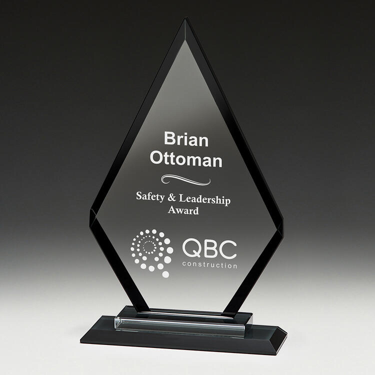 Glass trophies typically have a very slight green tinge, which can subtly affect the appearance of colour printing. In contrast, crystal trophies are completely clear.