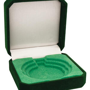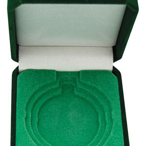 This green and white medal presentation box is designed to honour achievement with lasting impact. Its velvet like exterior and rounded rectangular shape provide a refined presentation, while the interior securely protects your medal. Crafted for both quality and durability, it offers a distinguished way to celebrate success.Fits 50,60 & 70mm Medals