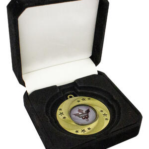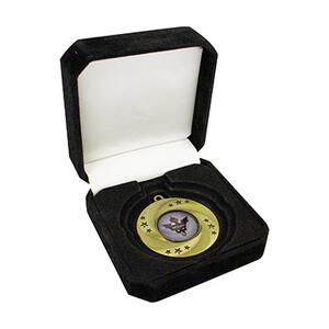 This keepsake medal case offers a refined way to store and showcase special moments of achievement. The rectangular box features a circular inset that frames your medal with distinction. Black and white tones lend an elegant finish, making this sports medal holder a trusted choice for memorable recognition. Fits 50,60 & 70mm Medals