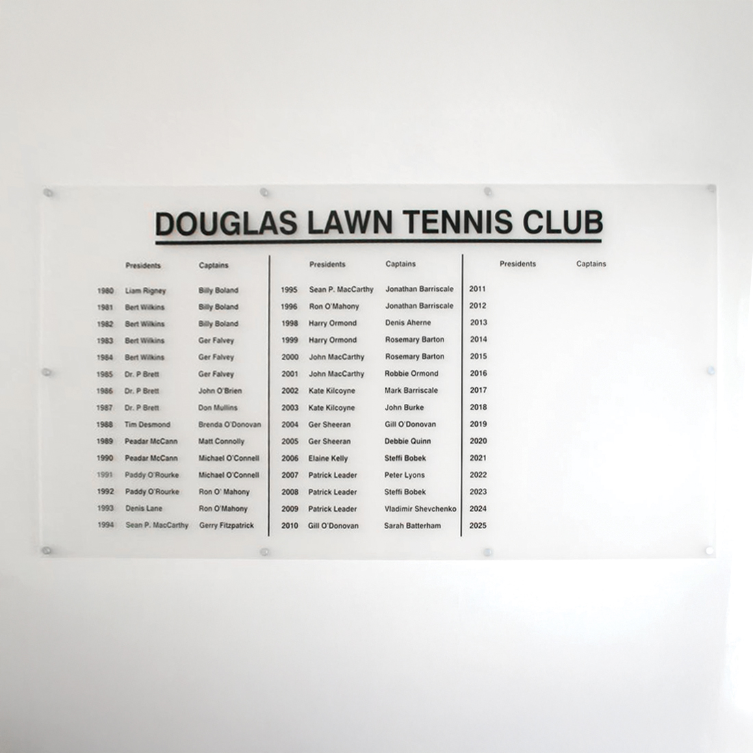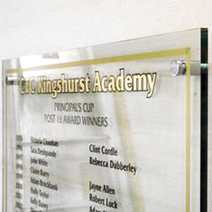 Our contemporary honour boards are made from acrylic, metal, glass, or a combination.
