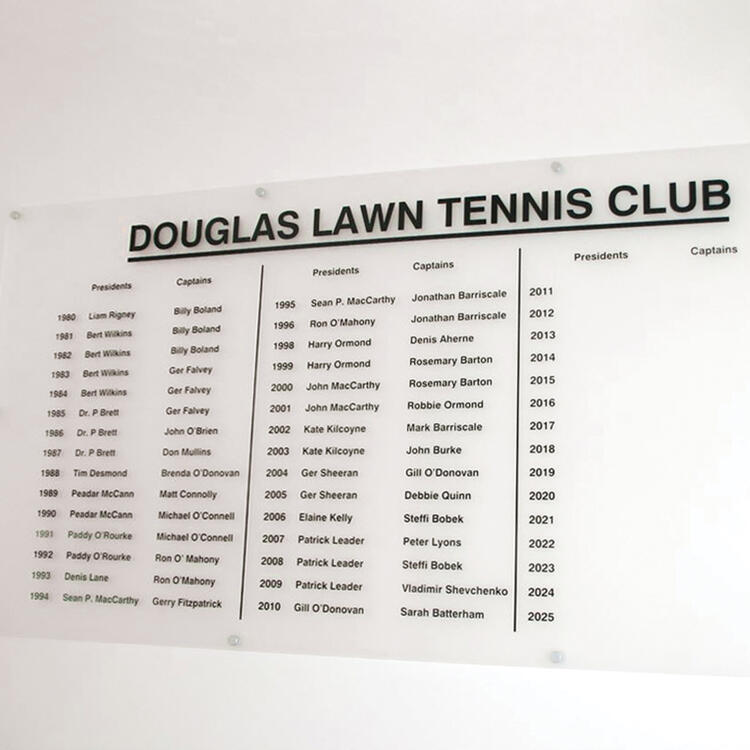 This Contemporary Honour Board features a clear acrylic construction, providing an elegant and professional platform for recognition.