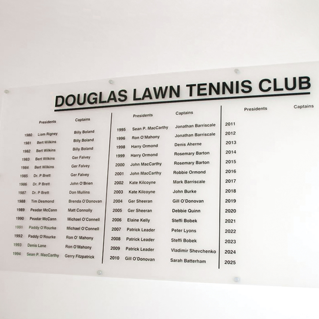 We use a Saturn finish to give the honour boards a prestigious yet non-reflective finish under normal conditions.