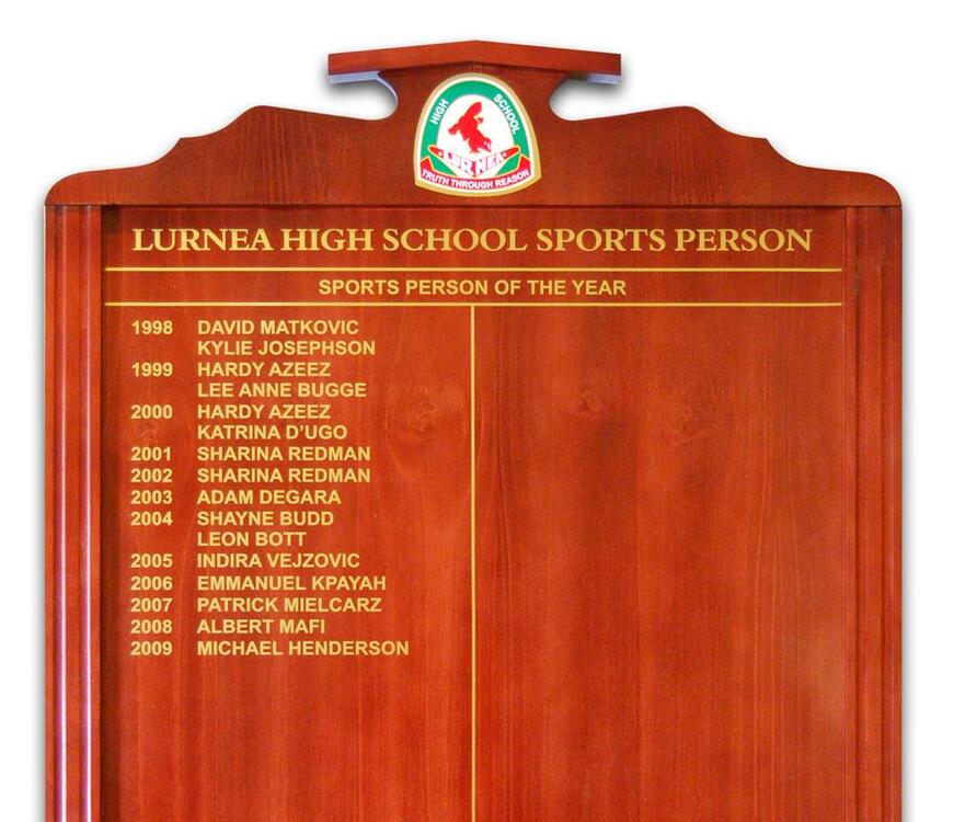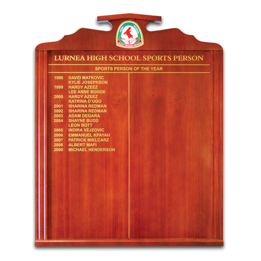 This timber honour board features a refined profile header and cap for a distinguished presentation.