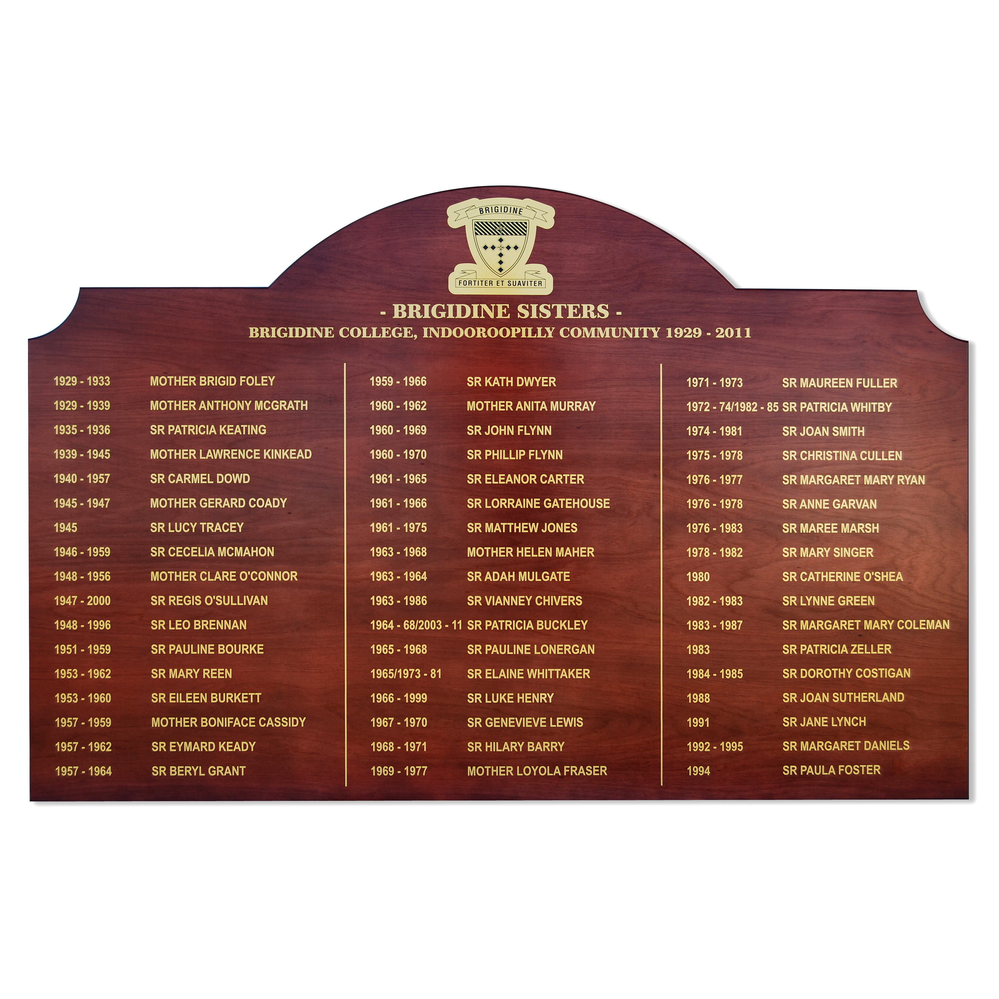 Quality Timber Honour Board with Arched Title Panel - Mahogany Finish - Landscape Orientation - SPECIAL