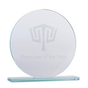 Glass trophies typically have a very slight green tinge, which can subtly affect the appearance of colour printing. In contrast, crystal trophies are completely clear.
