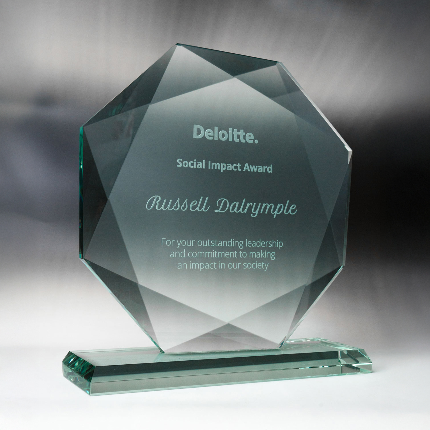 We use Superior Sandblast engraving or high-resolution full-colour printing to achieve striking results on our glass awards and trophies.