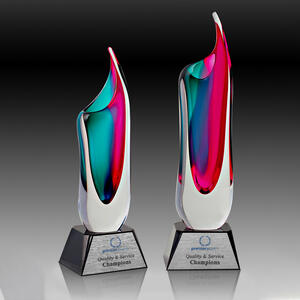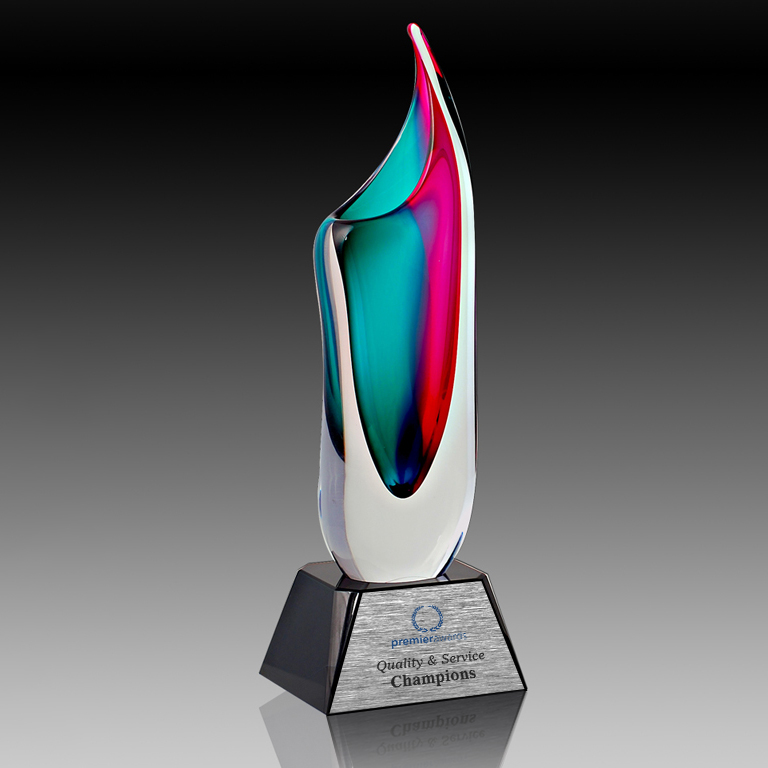 Art Glass Trophy - Blown Crystal Accolade - Blue+Turqoise on Crystal Base