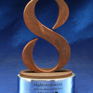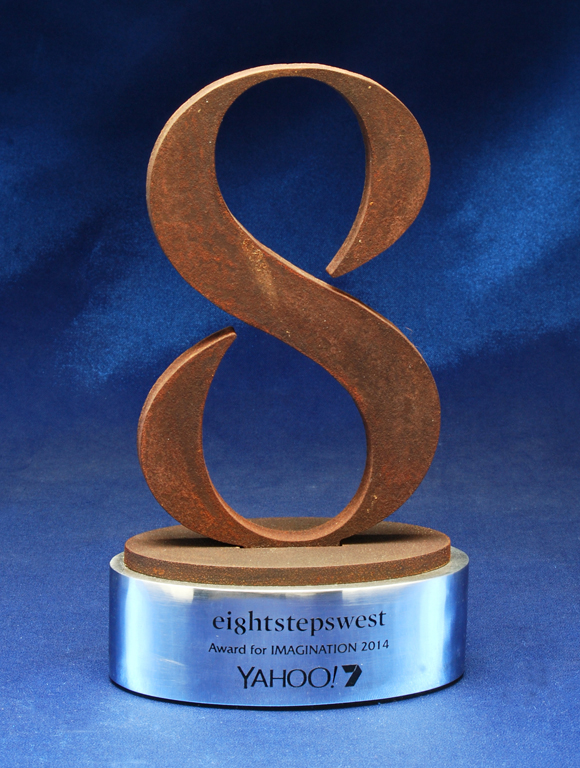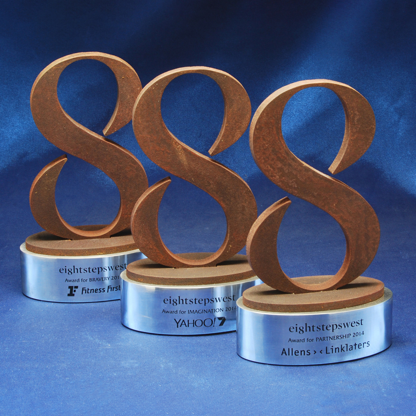 This distinctive award showcases the creative use of rusted corten steel, treated through a controlled chemical patina process to achieve a refined, aged finish. Mounted on a polished alloy base, the contrast between rustic texture and sleek metal brings a contemporary industrial edge to any event or recognition piece. Ideal for organisations seeking a raw, authentic aesthetic, this style demonstrates the versatility of combining traditional materials with modern craftsmanship for one of a kind custom awards.