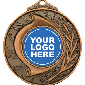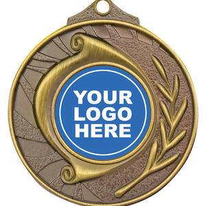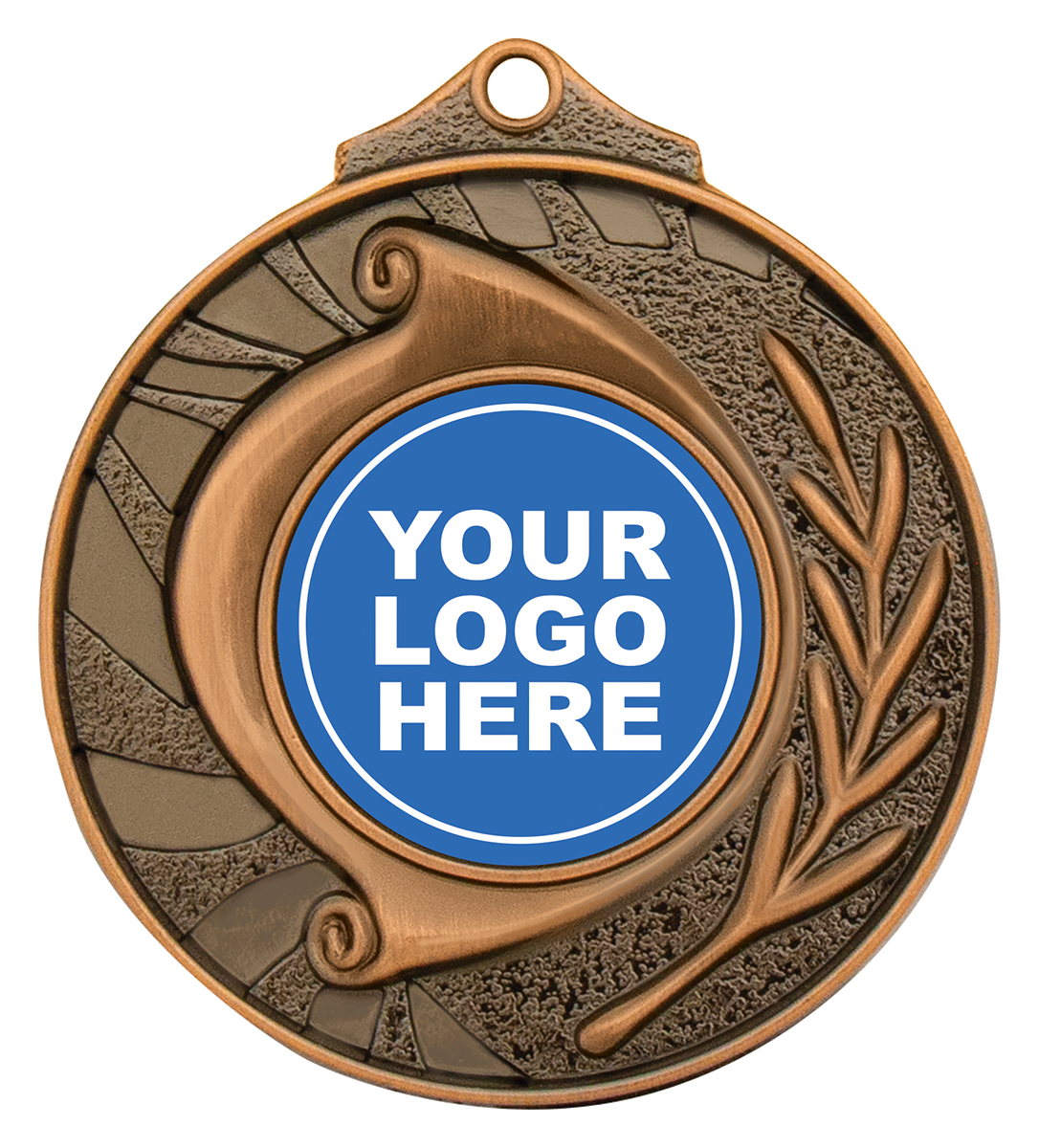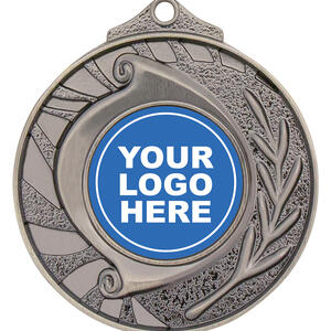 Crafted in durable metal and finished in your choice of silver, gold, or bronze, this circular sports medal stands out with decorative wreath patterns. The 52mm diameter provides a classic, substantial feel. A 25mm central area offers space for custom branding, making it a versatile choice for recognising sporting achievements across a range of events.