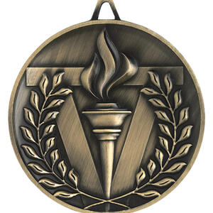 This gold medals piece is crafted in durable metal, featuring a crisp circular profile adorned with a classic torch and laurel motif. The design symbolises honour and achievement, making it an ideal choice for general recognition across any field. A practical loop allows for easy attachment or display, combining elegance and versatility in one timeless award.