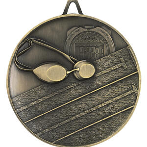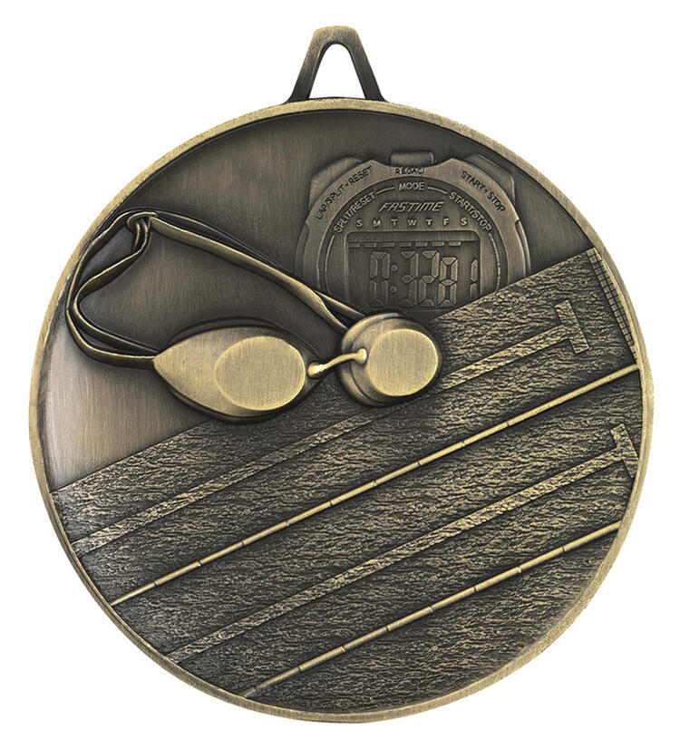 Celebrate swimming achievement with this elegantly crafted goldmedal, designed to honour skill and dedication in the pool. Measuring 62mm, the circular metal award features embossed details of swimming goggles, a stopwatch, and swimming lanes, capturing the essence of the sport. A reliable choice for swimming medals, it offers both durability and a memorable symbol of recognition.