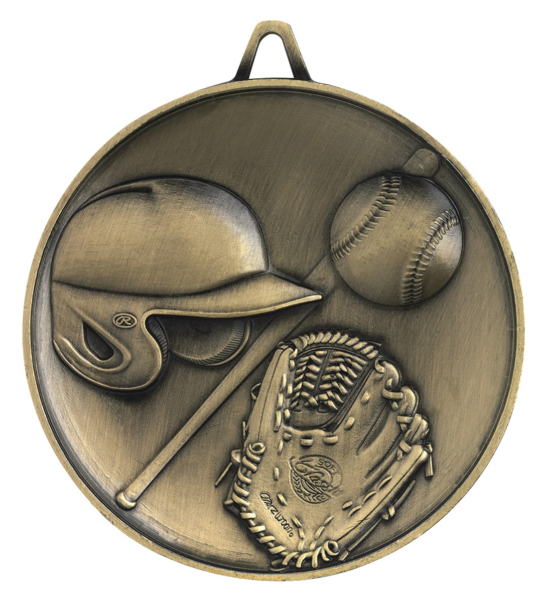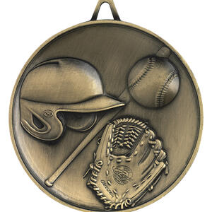 Crafted for lasting recognition, this budget heavyweight baseball medal delivers a sense of achievement with its solid metal construction and detailed gold finish. The circular design showcases embossed images of a baseball helmet, bat, glove, and ball, reflecting the essence of the sport. An ideal choice for baseball teams and organisers seeking a reliable and memorable award.