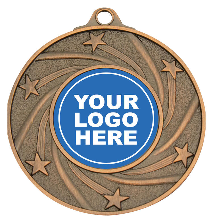This sports medal is crafted from quality metal in a choice of silver, bronze, or gold finishes, making it a versatile option for recognising achievement across any discipline. The circular shape is accented by a striking star and swirl design, giving it a refined and celebratory appearance. A 25mm central area is included for customisation, ensuring each award remains exclusive and memorable.