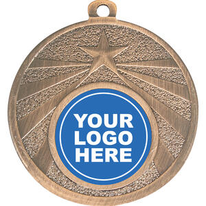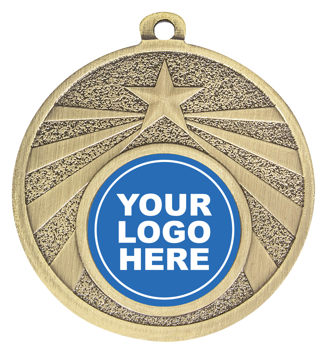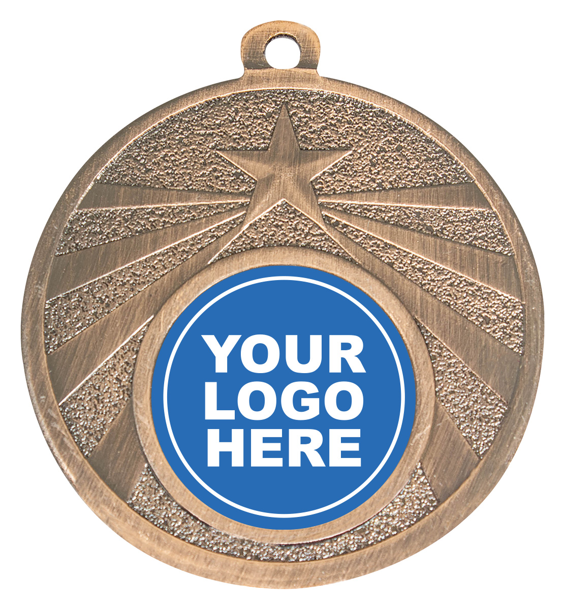 Celebrate sporting achievement with the Budget Starshine medal, crafted in durable metal and finished in your choice of bronze, gold, or silver. Its circular shape and radiant star design bring a touch of elegance to general sports recognition, while a central area allows for customisation. An ideal solution for those seeking cheap sports medals with a professional appearance.