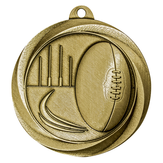 Celebrate achievement on the field with this expertly crafted footy medal, part of the trusted Econo Medal Series. Featuring a detailed football and goalposts design, each 50mm circular medal is available in durable gold, silver, or bronze finishes. These footy medals are ideal for recognising outstanding performance in Aussie Rules.