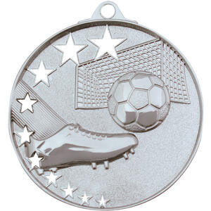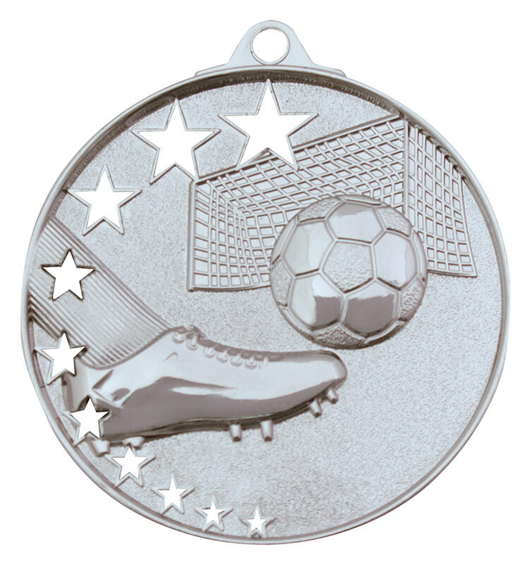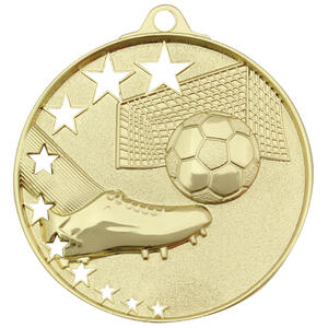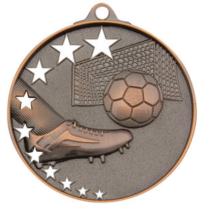 Crafted from quality metal and finished in bronze, silver, or gold, this football medal offers a refined way to celebrate achievement on the field. The circular design showcases a football boot, ball, and goal net, all set against a backdrop of stars for a memorable, sport focused presentation.