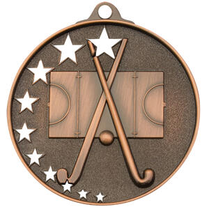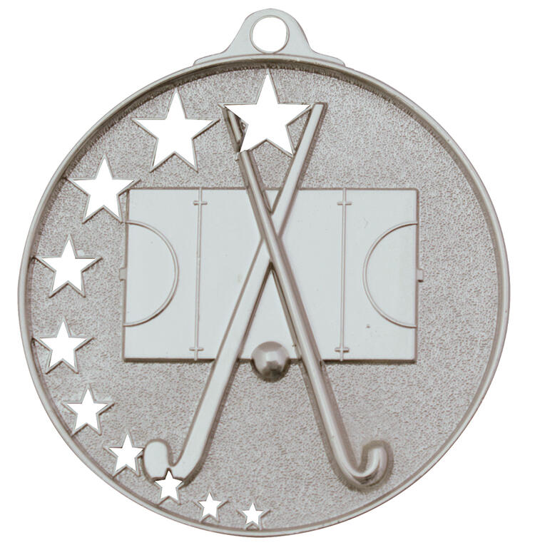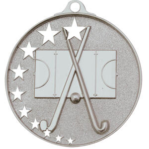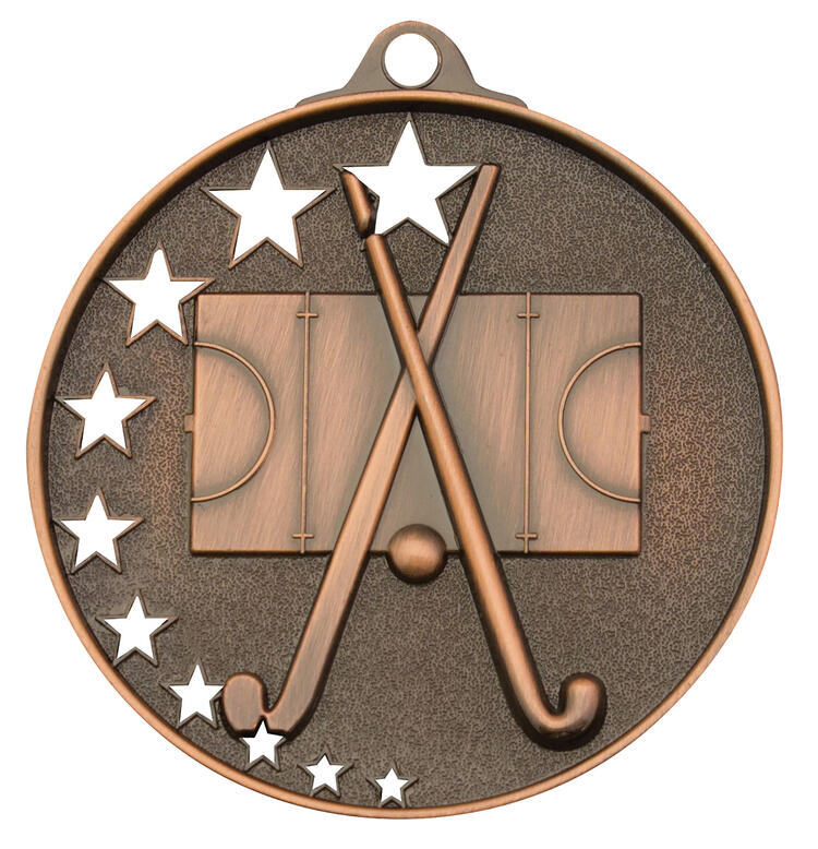 Showcasing a refined circular design, this field hockey medal features crossed sticks, a ball, and a detailed field layout, all framed by a ring of stars. Crafted from durable metal and available in gold, silver, and bronze, it offers a lasting symbol of achievement. This quality award is ideal for honouring excellence in field hockey competitions.