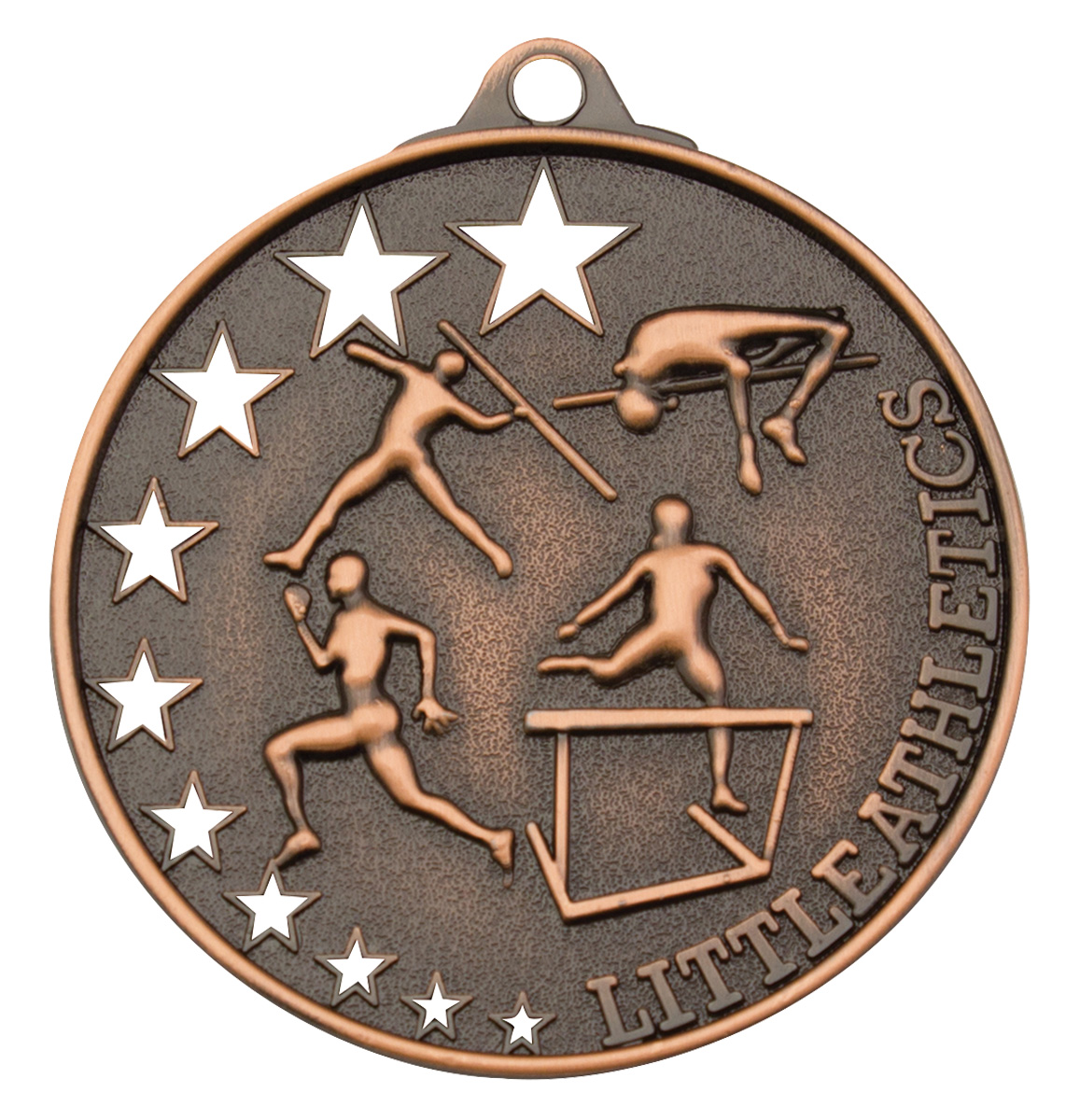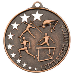 Celebrate achievement in sport with these athletics medals, crafted in durable metal and finished in your choice of bronze, silver, or gold. The circular design features detailed, embossed figures representing a range of athletic events, highlighted by decorative stars and the 'Little Athletics' motif. These medals offer a professional and memorable way to recognise dedication and skill in athletics competitions.